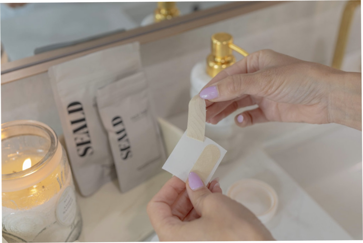 You spend real money on serums and eye creams, but while you sleep your face moves, creases, and most of that product ends up on your pillow. Seald Face Tape Smoothing Strips use a proprietary, medical-grade cotton blend adhesive to gently hold targeted areas flat through the night, locking in your skincare and visibly reducing the appearance of smile lines, crow's feet, under-eye creasing, and frown lines. Sixty strips per pack, hypoallergenic, latex-free, and designed to peel off cleanly in the morning without tugging or leaving residue on skin that's already sensitive enough.