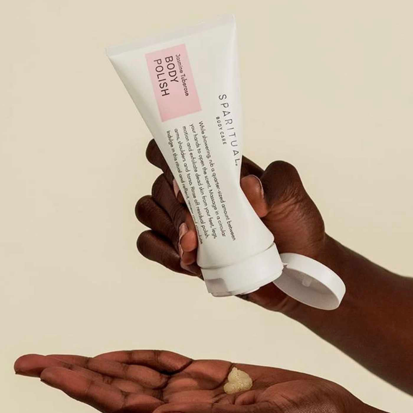 Jasmine Tuberose Body Polish by SpaRitual is formulated with ancient healing ingredients including Coconut Sugar, Ginger Root Extract, Jojoba Oil and Sunflower Oil to help soothe and moisturize. This renewing blend gently exfoliates and deeply hydrates skin, while the sweet exotic scent of Jasmine Tuberose awakens the senses.