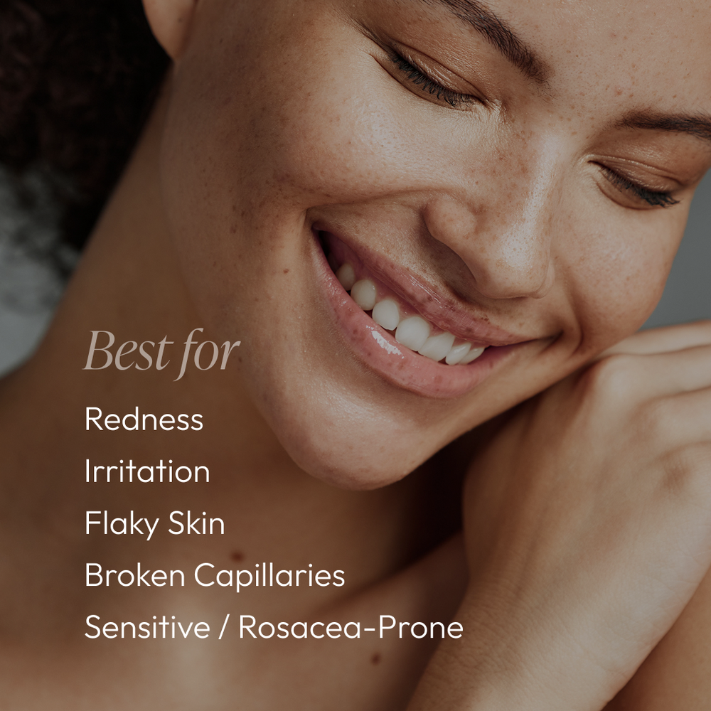 A cream designed for those with sensitive skin and/or Rosacea. Contains hydrating agents and powerful anti-irritants to help reduce the appearance of redness and itching sensations, to improve skin softness and comfort upon application.